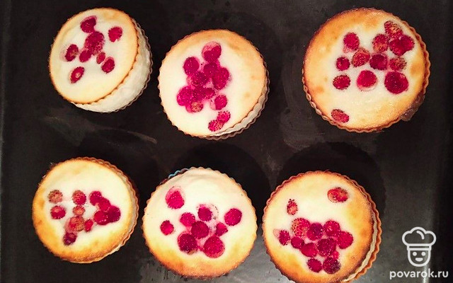 Сверху посыпьте любыми ягодами по вашему вкусу. Можете свежими, замороженными. У меня — земляника.