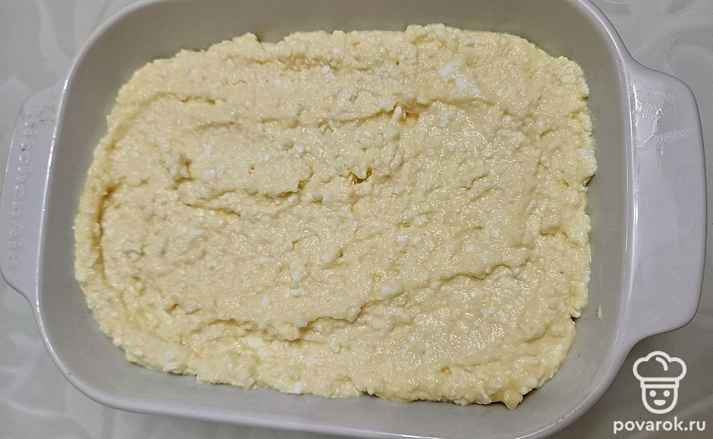 Выложите тесто в форму для запекания и отправьте в духовку на 20-25 минут. Выпекайте до румяной корочки.