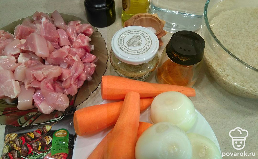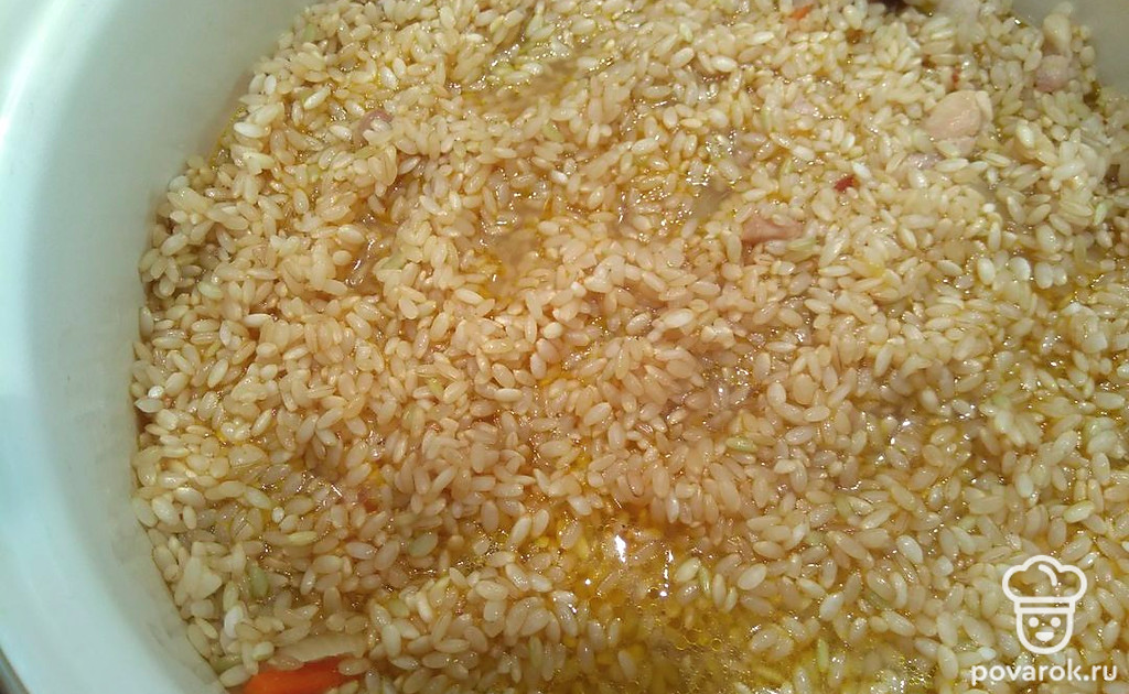 Рис предварительно вымыть несколько раз и замочить в воде.