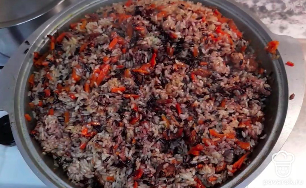 Плов из дикого и белого риса удивляет разнообразием вкусов. Мало кто знает, что помимо классического рецепта плова, его можно изменить различными видами риса. Приготовьте по этому рецепту и убедитесь в его необычности и пикантности.