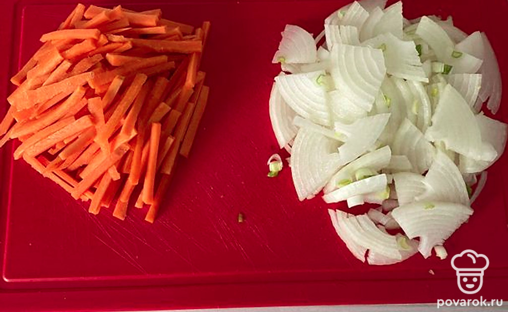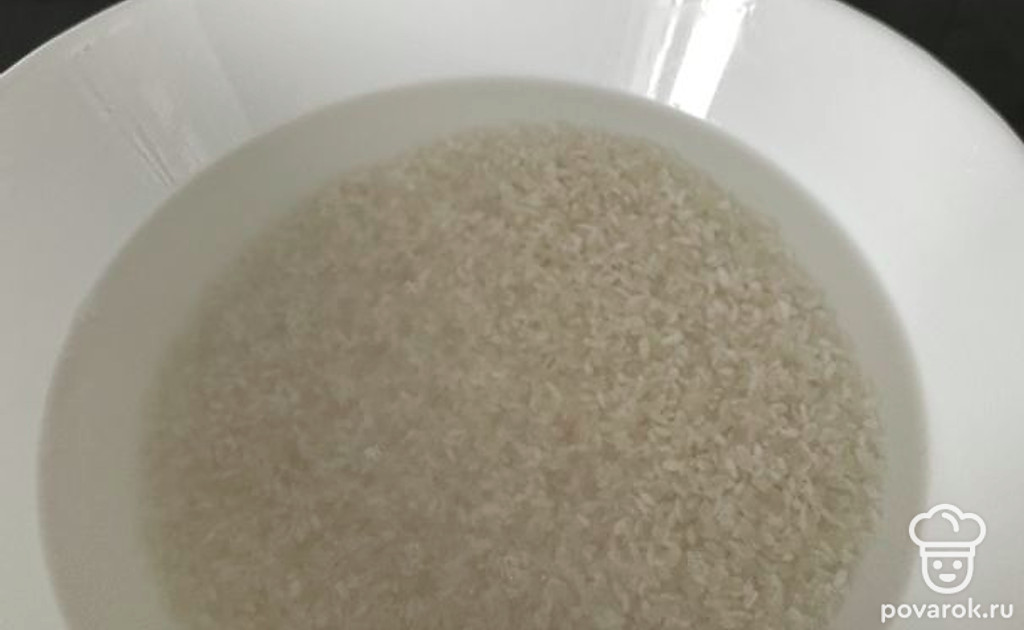 2 стакана риса промыть в холодной воде до тех пор, пока вода не станет прозрачной.