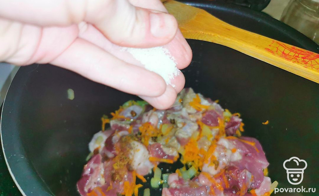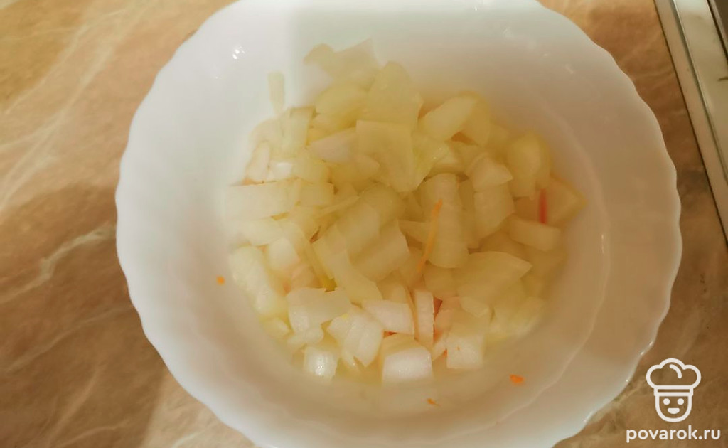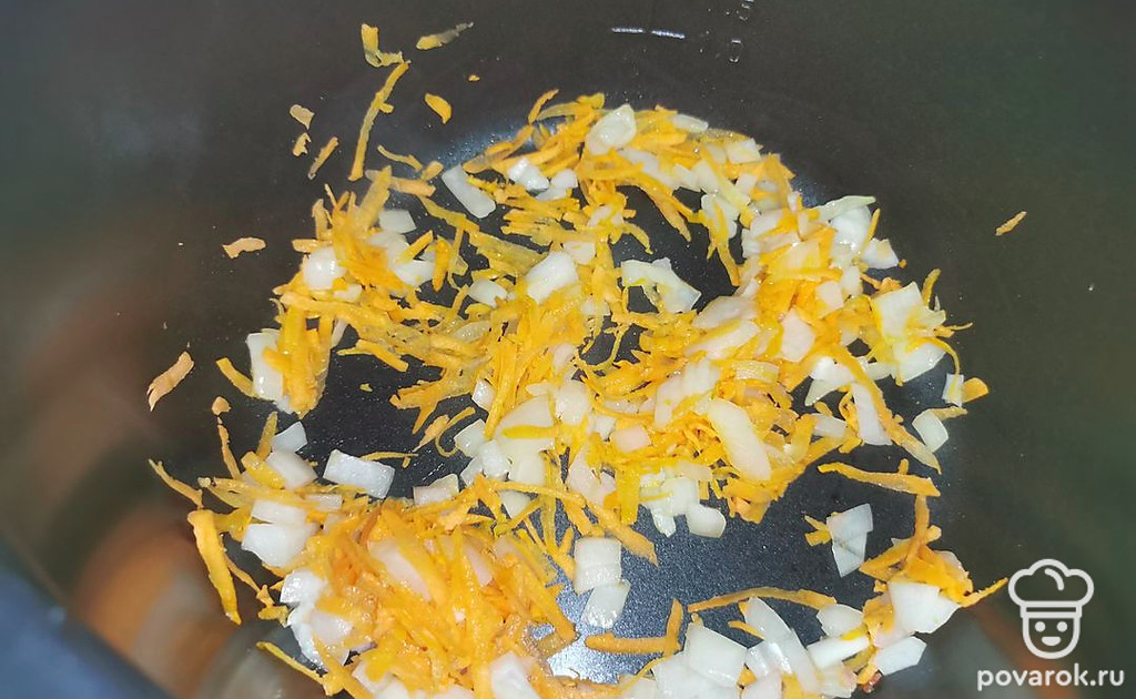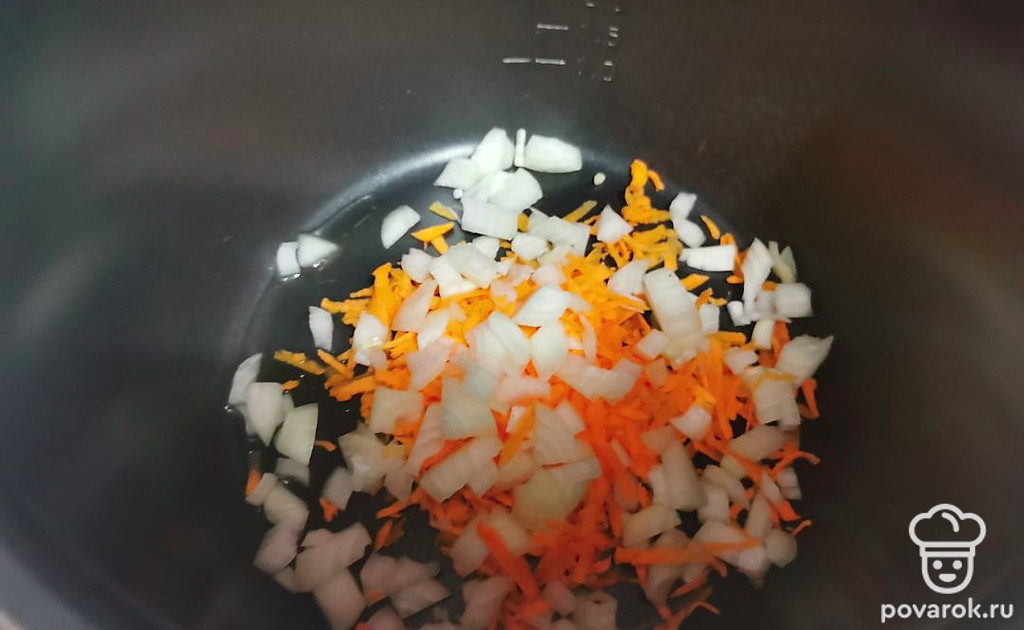 Как только лук с морковью стали золотистого цвета, выключить мультиварку.