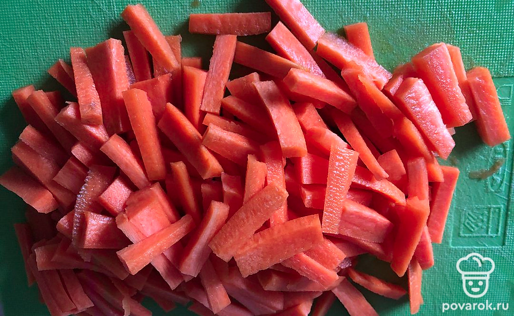 Бедро очищаем от кости и кожи, режем на кусочки.
