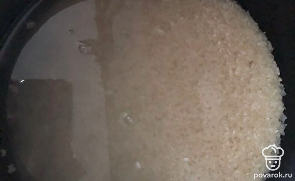 Рис промываем и заливаем водой, ставим варить в мультиварке.