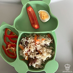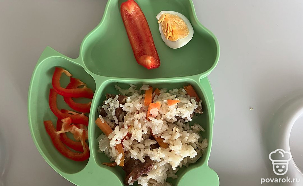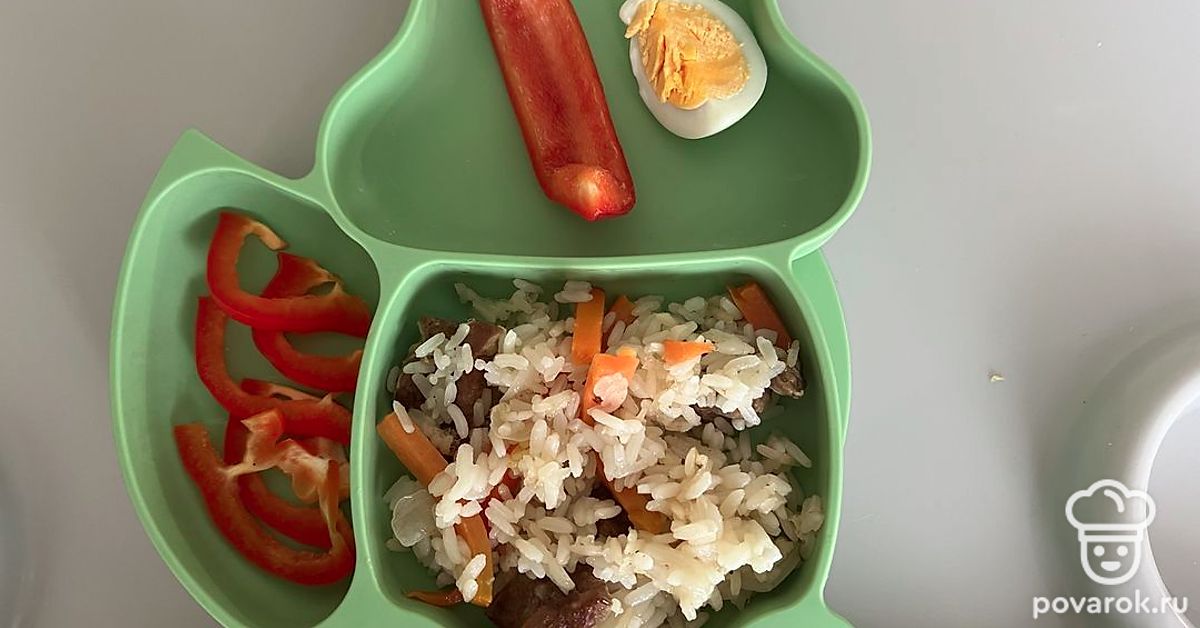 Плов для малышей готовится без специй. Для приготовления блюда подойдет мясо индейки, курицы или говядины. Рекомендуется предлагать плов детям от 1,5 лет.