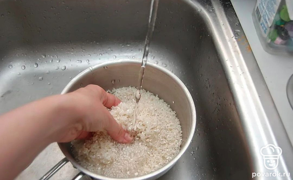Рис длиннозерый и пропаренный (1стакан) промывайте, пока вода не станет прозрачной. Слейте всю воду.