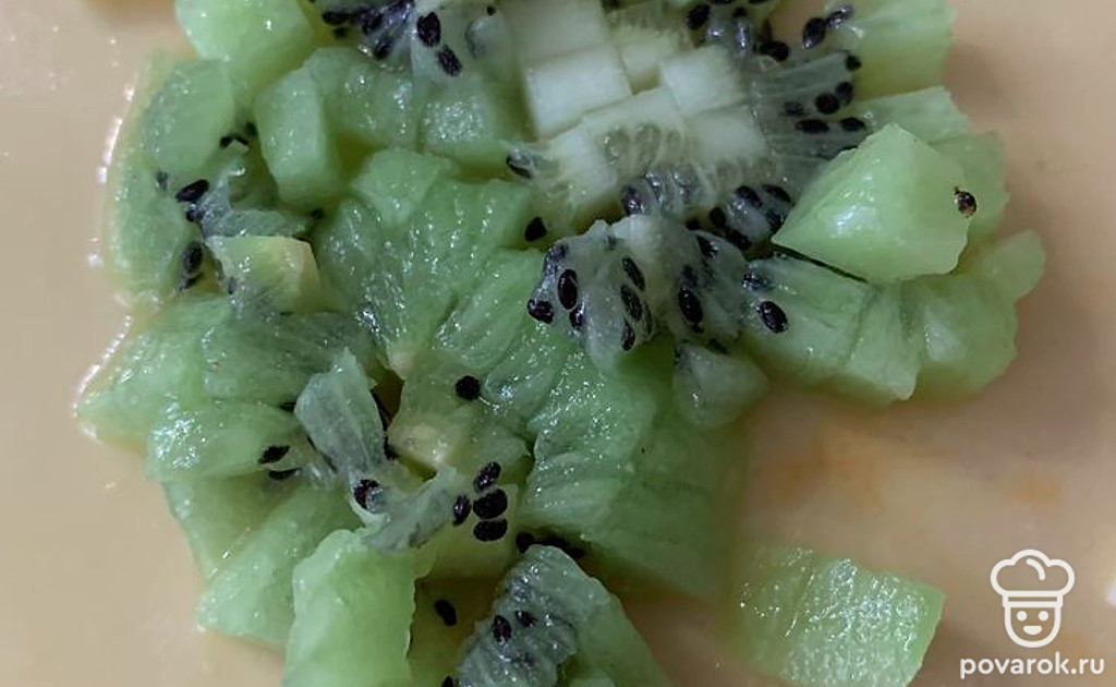 Киви почистите и мелко нарежьте.