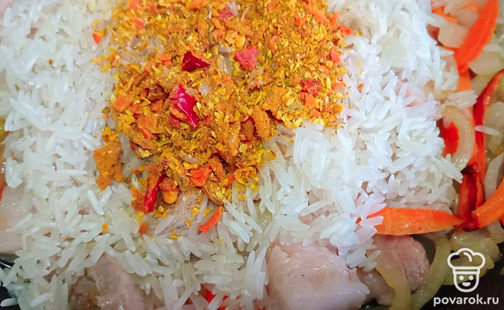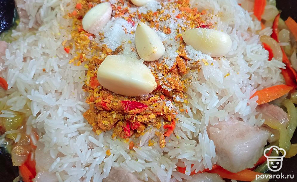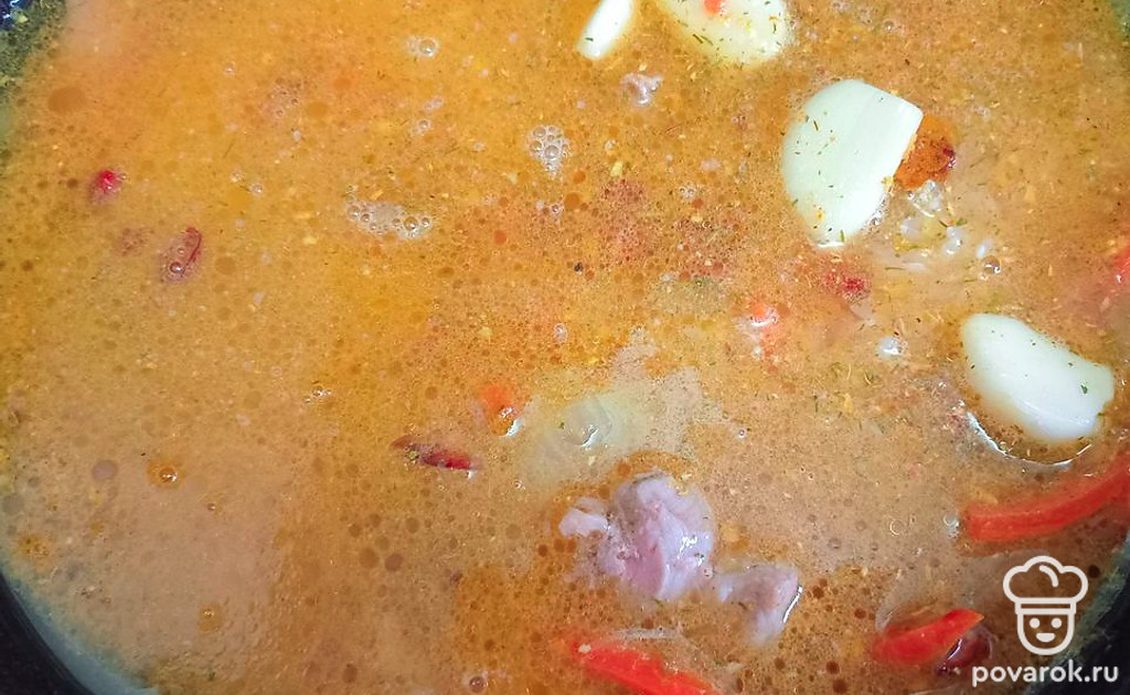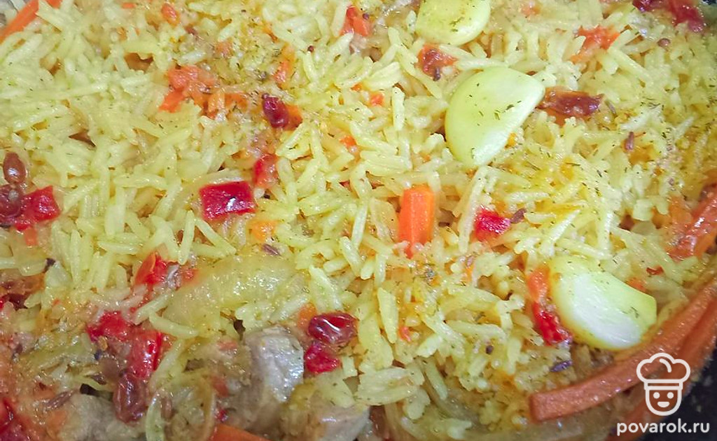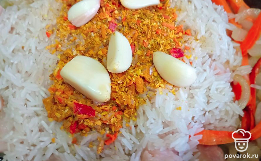 Накройте крышкой и готовьте на небольшом огне 25 минут. Выключите огонь и оставьте на 5 минут. Крышку не снимайте.
