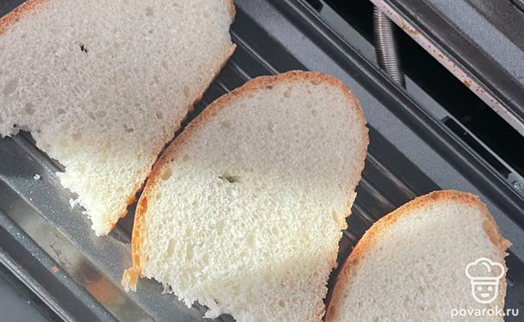 Поджарьте хлебные ломтики на гриле.