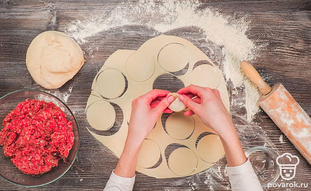 Сожмите края теста очень хорошо, чтобы фарш при приготовлении не просочился наружу.