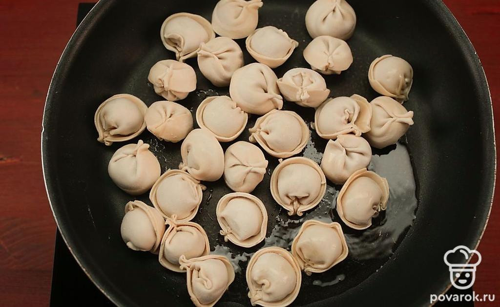 Не размораживайте пельмени перед жаркой, иначе они получатся бесформенными.
