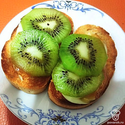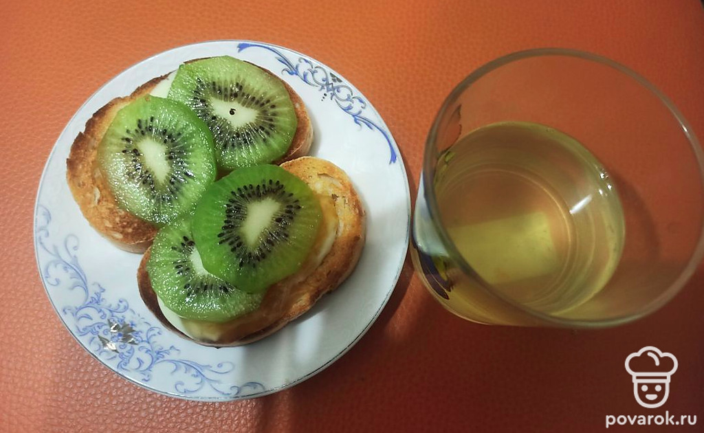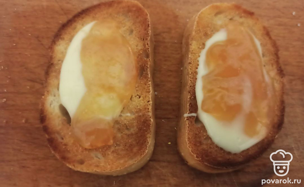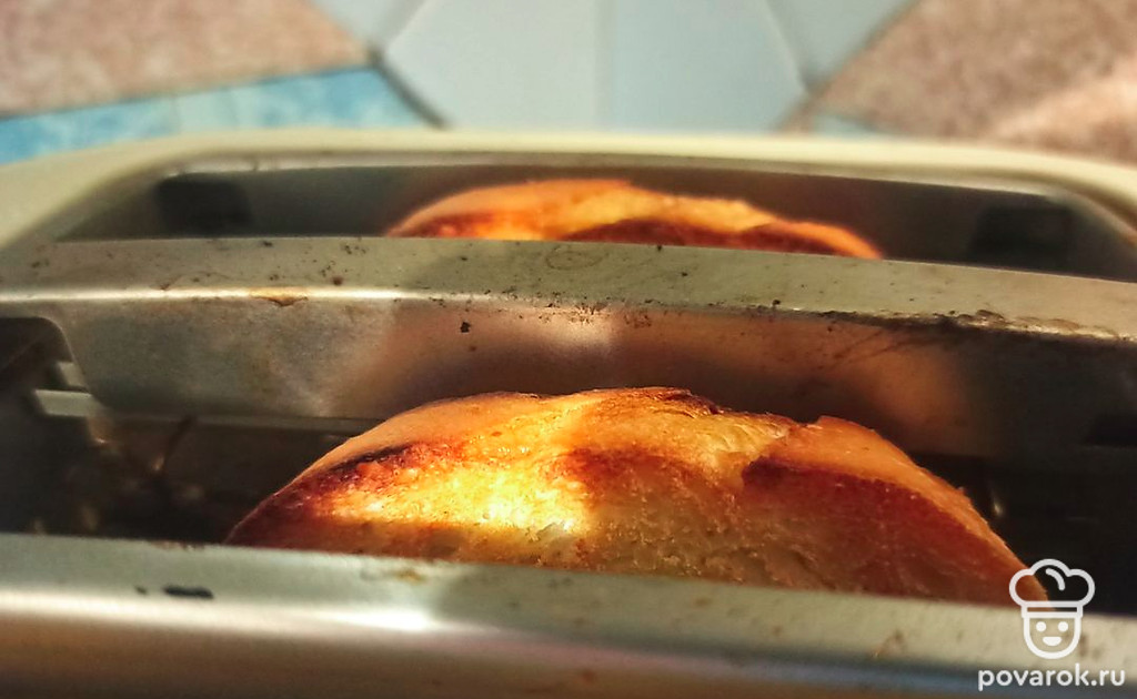 Ломтики белого хлеба поджарьте в тостере до золотистого цвета (2-3 минуты).