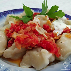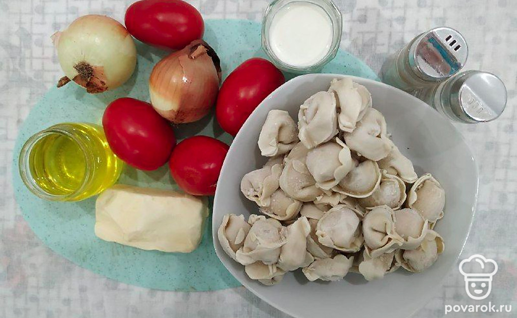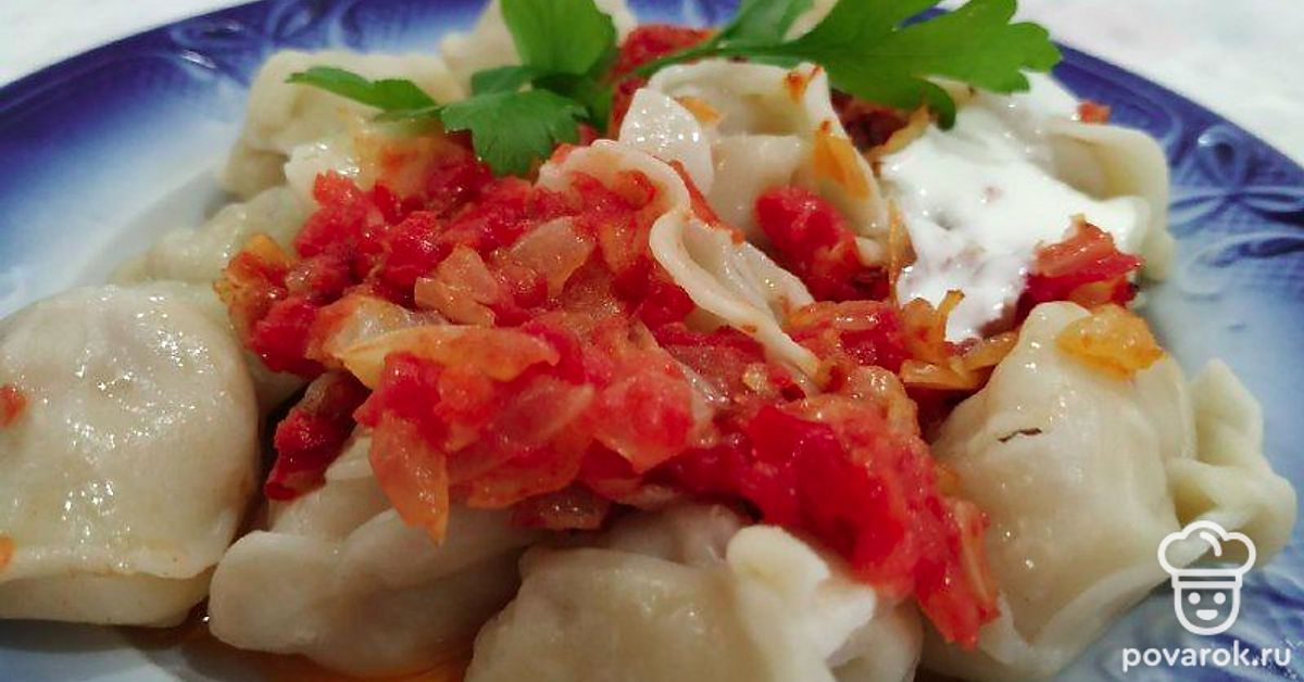 Витаминные пельмени с луком и помидорами