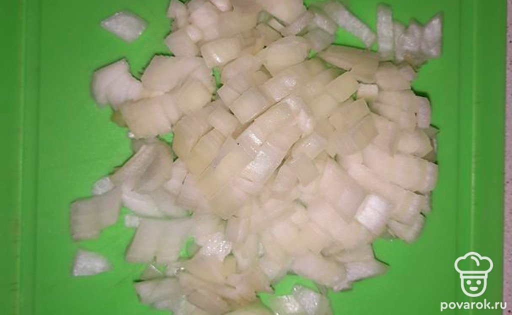 Очистить и нарезать лук.