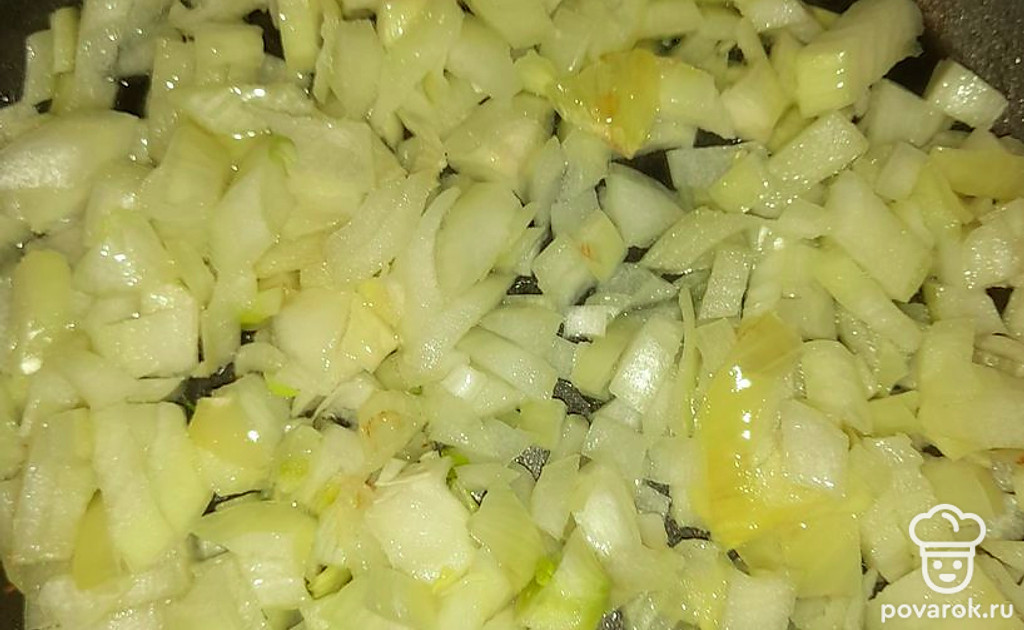 Обжарить лук.