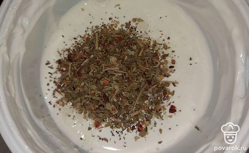 Для соуса смешать сметану, соль, сливки и специи.