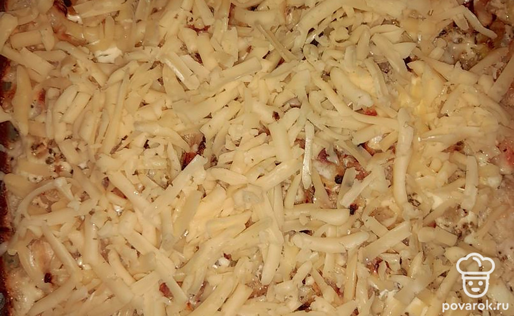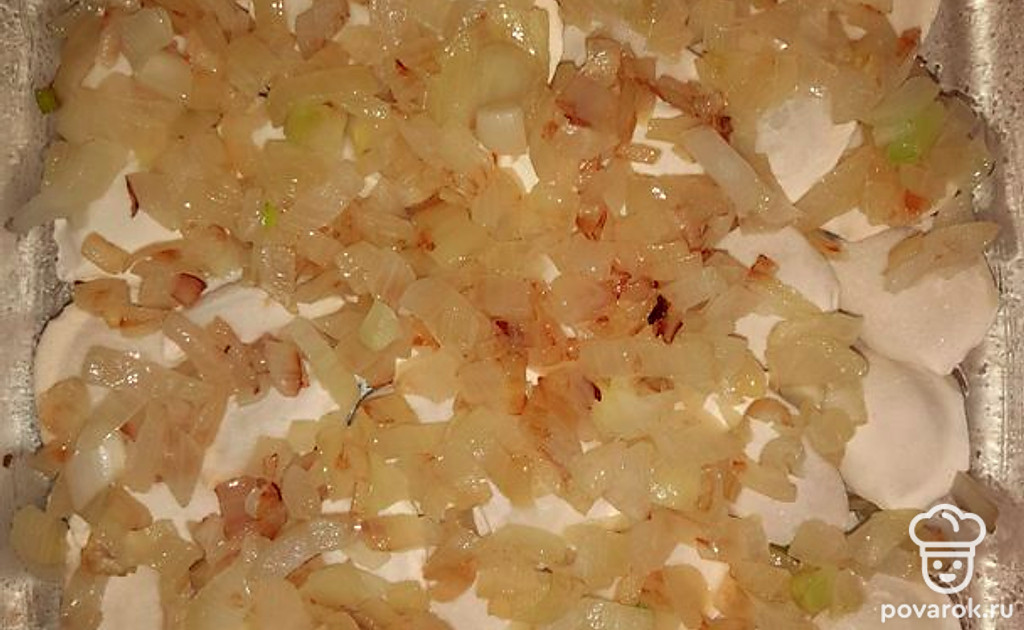 Сверху распределить обжаренный лук.