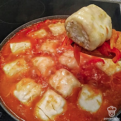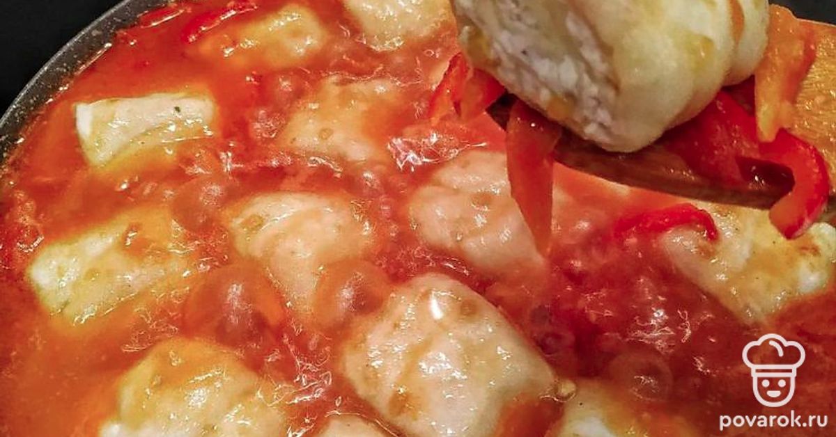 Открытые пельмени с куриным фаршем и томатной подливкой