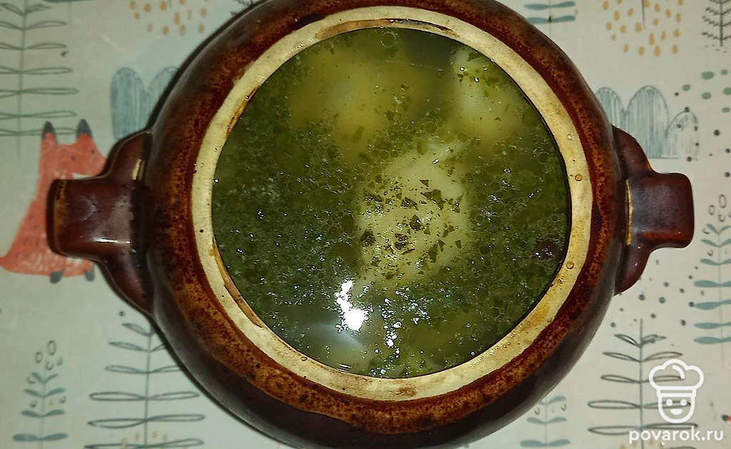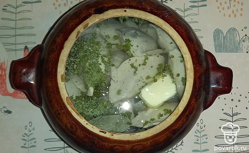 В горшочек налейте воды, выложите сливочное масло, накройте крышкой. Поставьте горшочек в разогретый до 200 градусов духовой шкаф. Готовьте блюдо около 45 минут. Приятного аппетита!