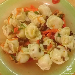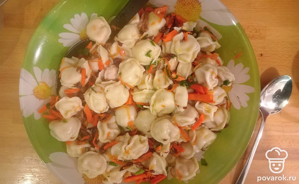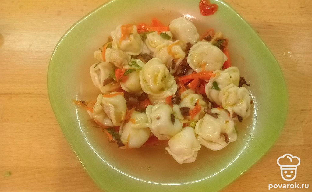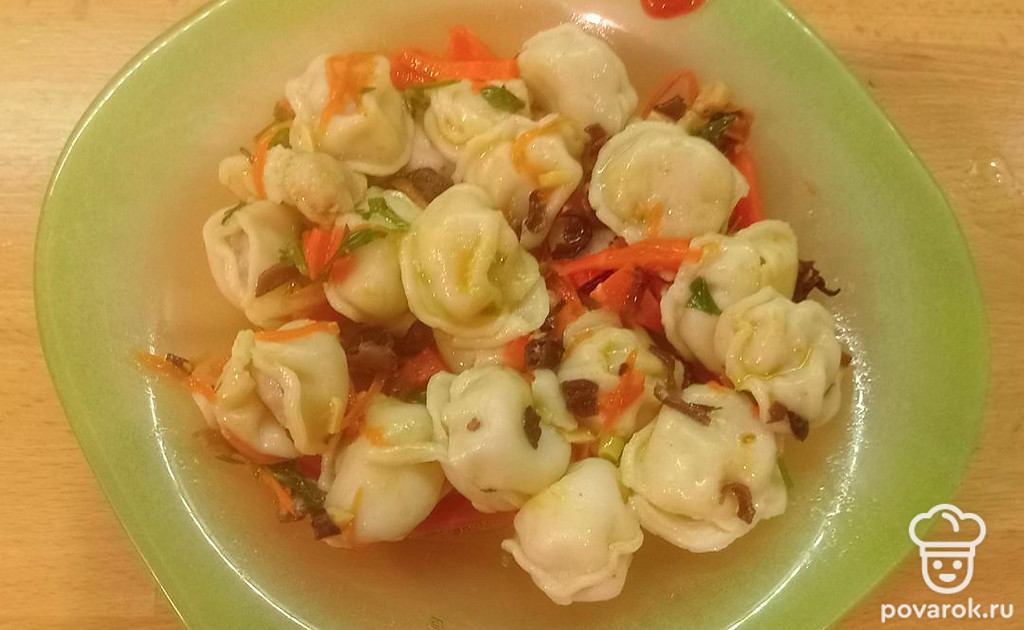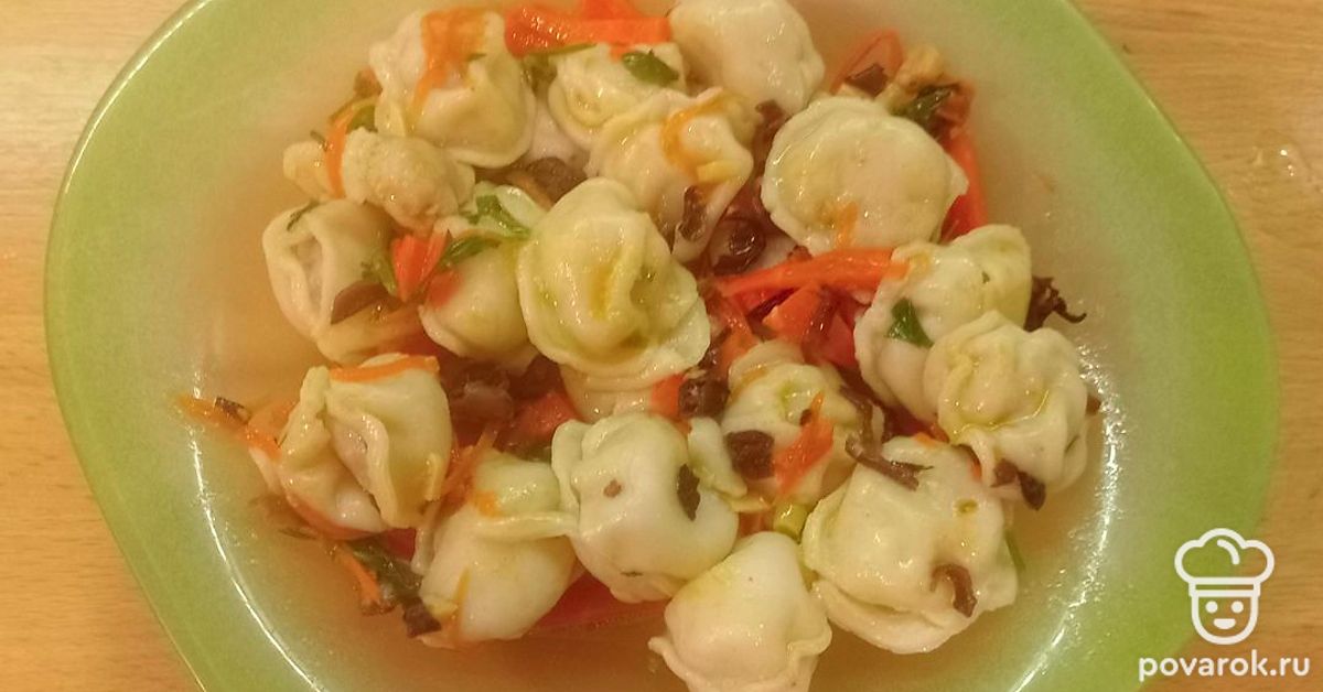 Оригинальная подача привычного блюда. Пельмени с жареными овощами.