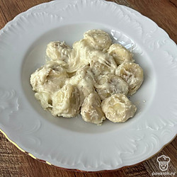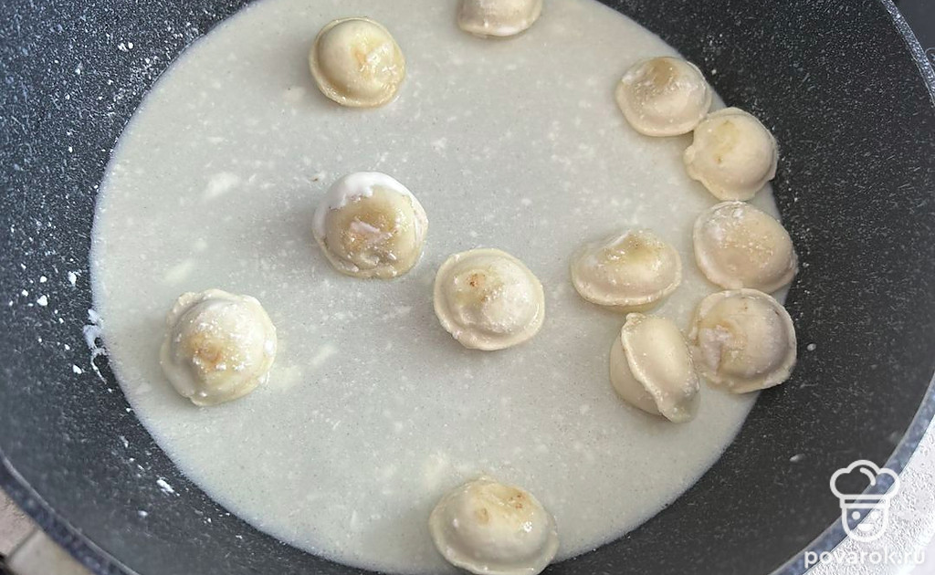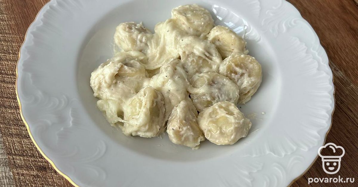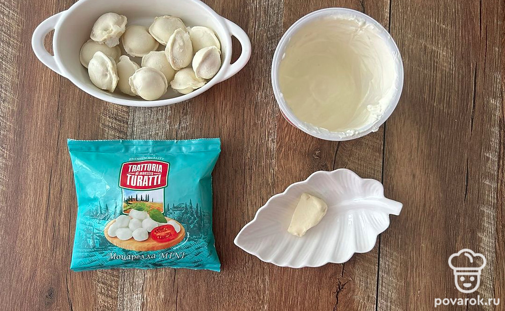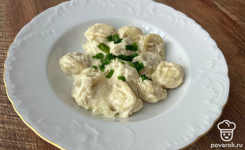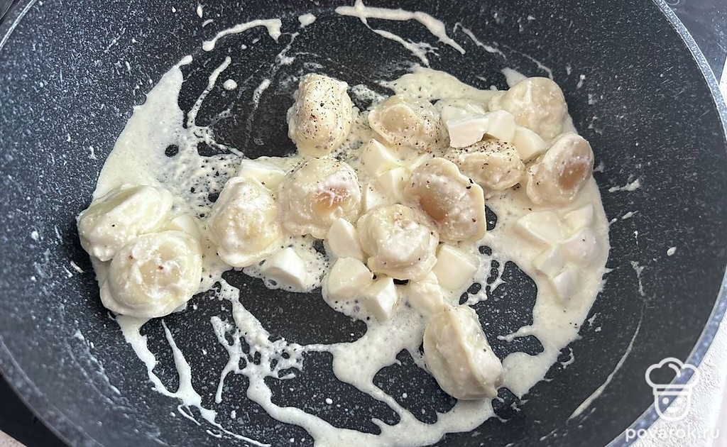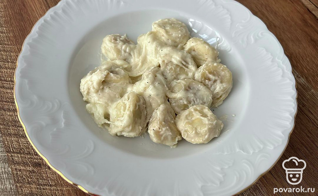 Пельмени в сливочном соусе с моцареллой