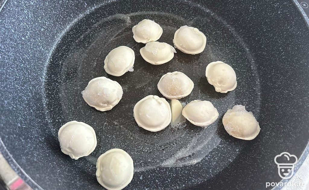 На сливочном масле обжарьте пельмени в течение 5 минут.