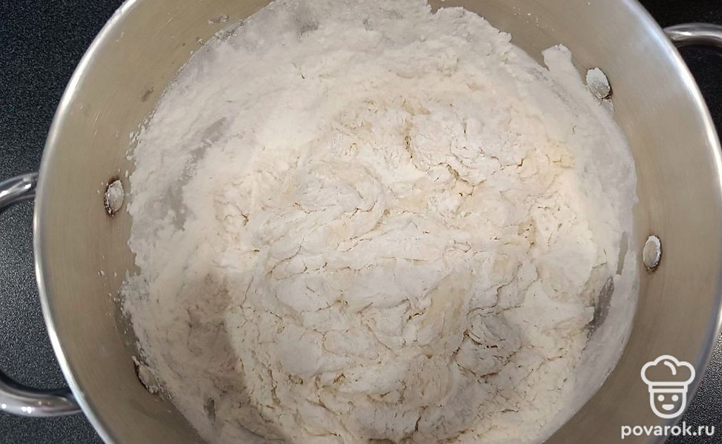 Смешайте в одной кастрюле стакан теплой воды, два стакана муки, два куриных яйца и столовую ложку соли. Хорошо перемешайте все ингредиенты. Замесите тесто.