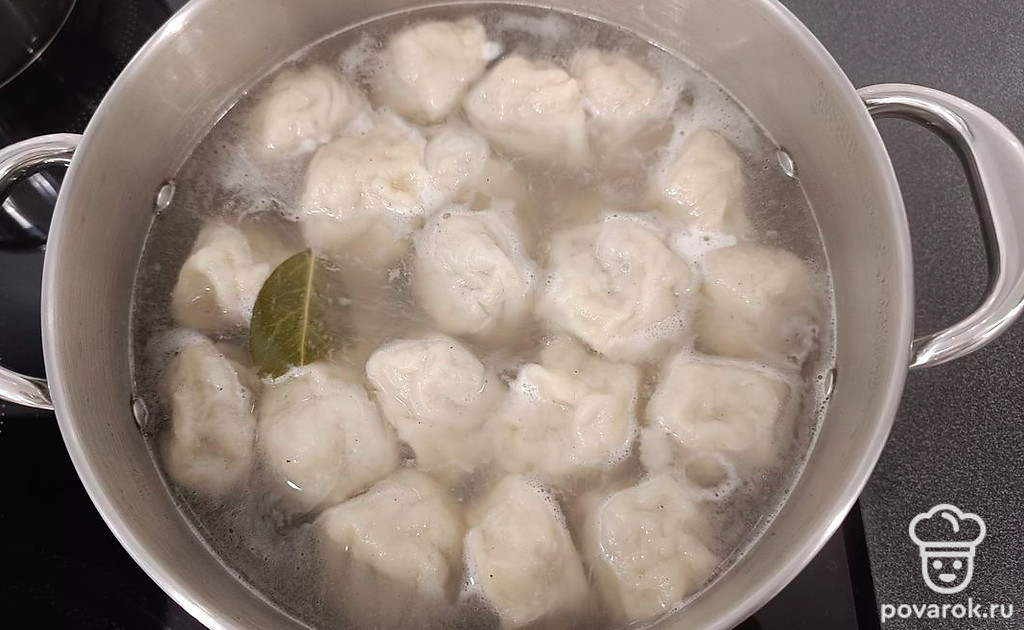 В кастрюлю налейте воду, дайте ей закипеть. Добавьте в воду соль и специи по вкусу, лавровый лист. Предложите в кипящую воду пельмени. Варите их до готовности 10 минут.
