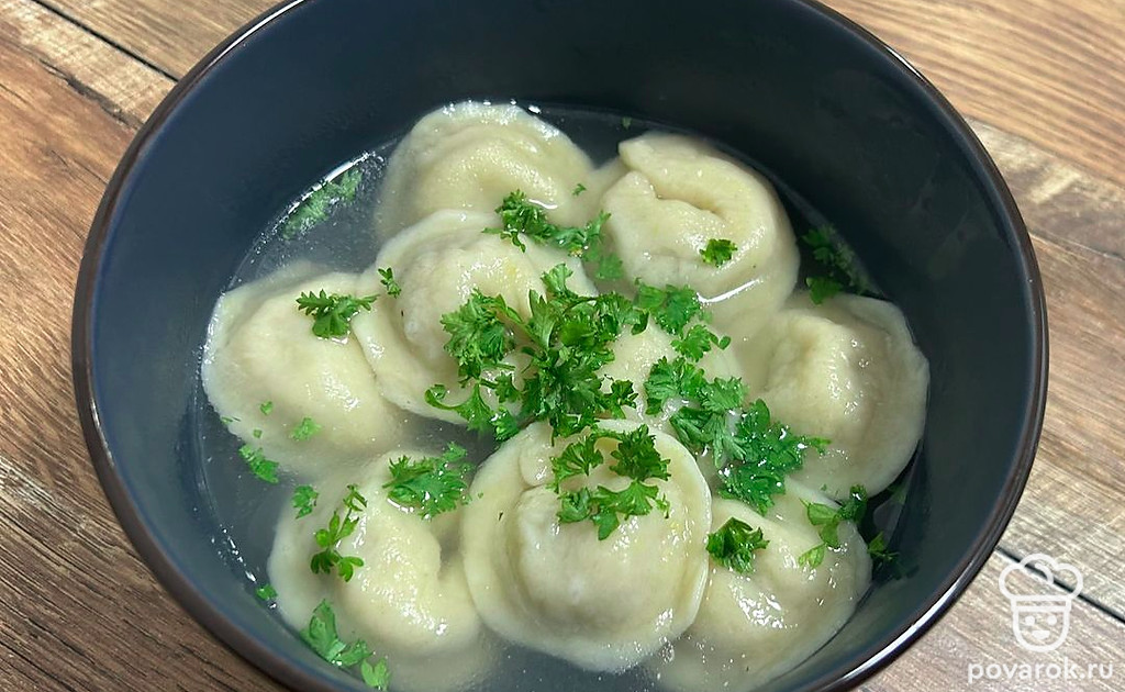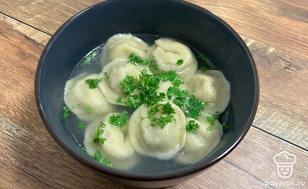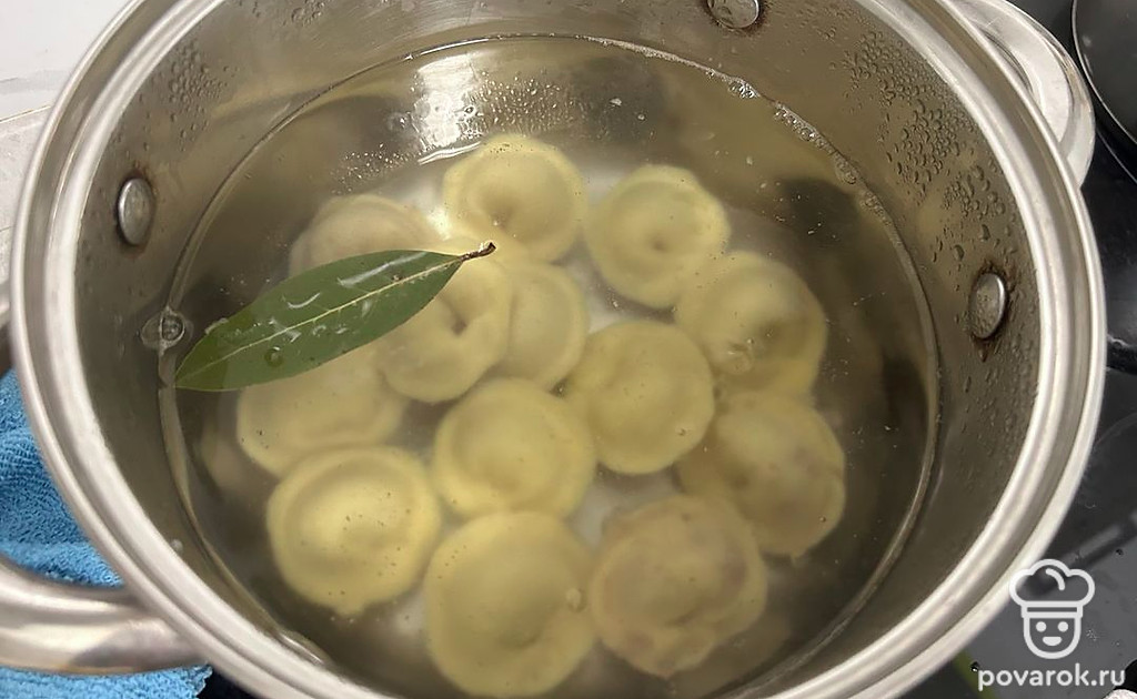 Отварите в подсоленной воде с добавлением лаврового листа одну порцию. После всплытия варите еще 5 минут. Затем накройте крышкой, дайте настояться 5 минут.
