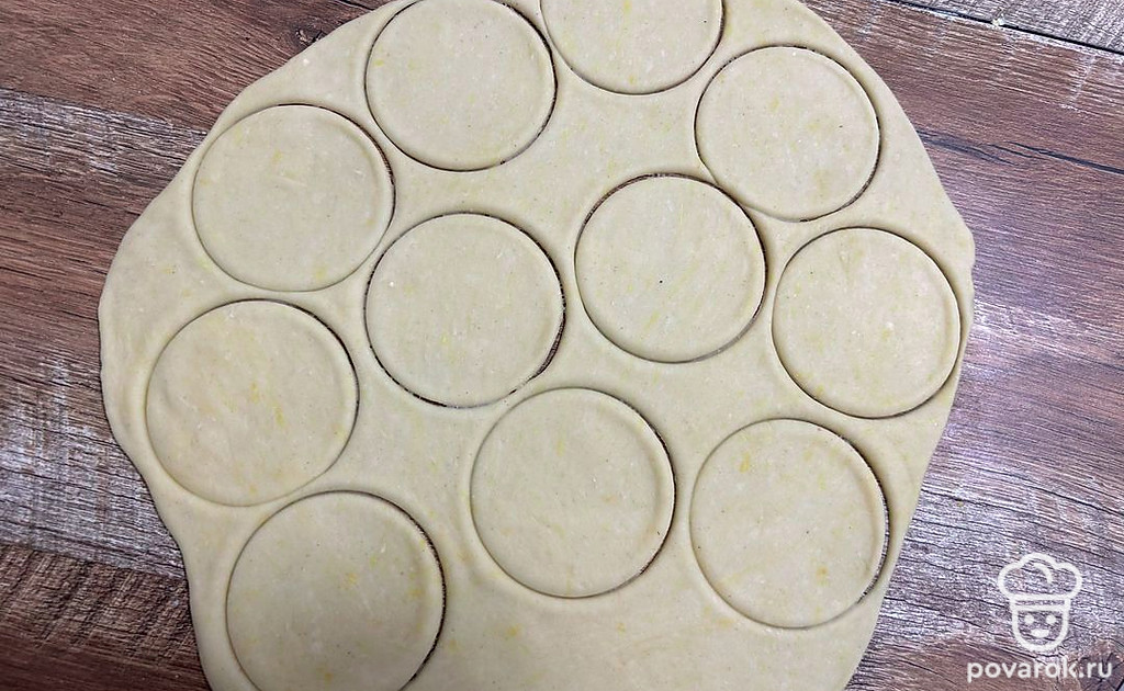 Раскатайте тесто. С помощью формы вырежьте кружки.