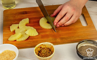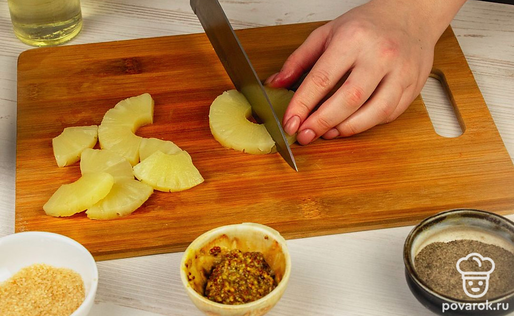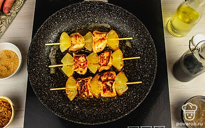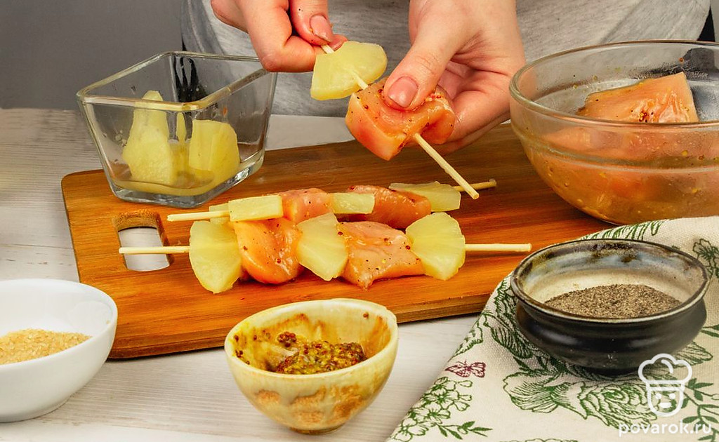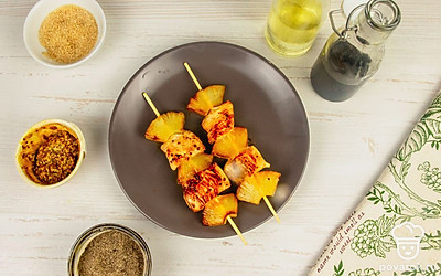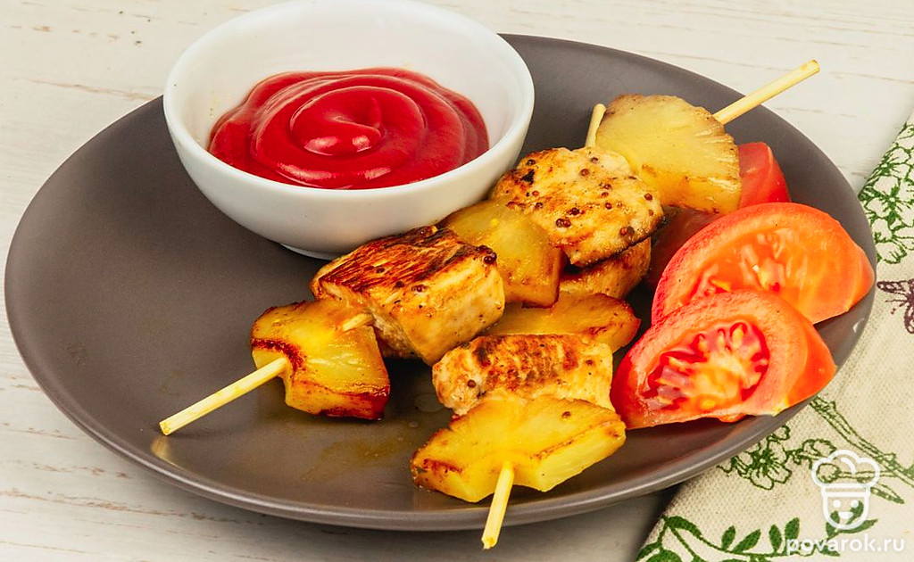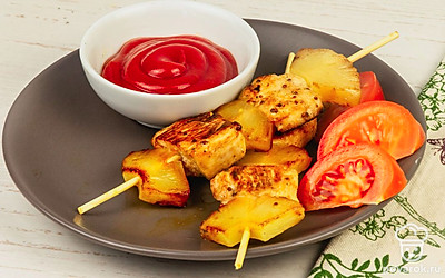 Новая, необычная вариация шашлыка сохраняет исконный вкус блюда, добавляя ему экзотические нотки. Нежная куриная грудка, пропитанная ароматным маринадом, отлично сочетается с нежной и хрустящей текстурой ананасов. Для приготовления шашлычка лучше всего использовать именно грудку, так как эта часть курицы является самой сочной. Шашлычок с курицей и ананасом украсит даже самый богатый праздничный стол, а идеальным дополнением к нему станет бокал красного терпкого вина!