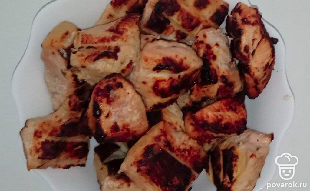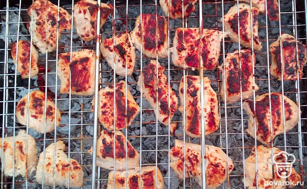 Погрузите индейку в соляной раствор на 6 часов. После нарежьте ее на куски. Затем приготовьте маринад, смешав йогурт с зирой, чесноком, паприкой, соком лимона и рыбным соусом. Тщательно перемешайте мясо с маринадом и оставьте его на пару часов. Затем нарежьте мясо на удобные кусочки. После обжаривайте на углях.