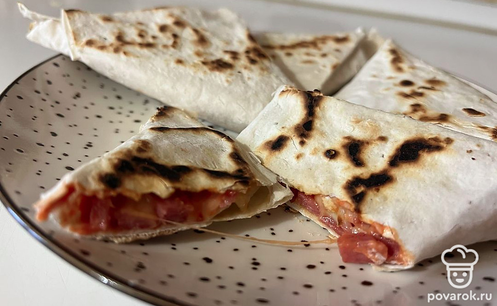 Отличный вариант перекуса. Благодаря томатному соусу конвертики получаются очень сочными.