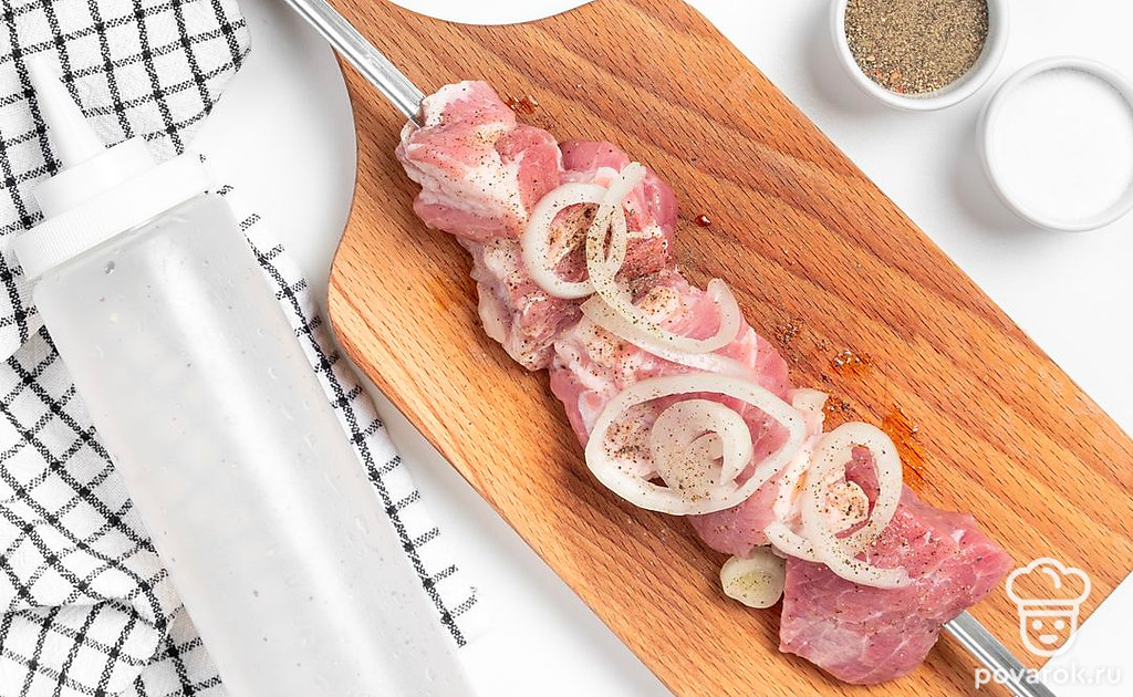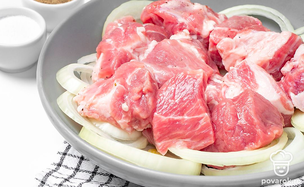 Для приготовления классического шашлыка понадобится минимальное количество ингредиентов: мясо, репчатый лук, соль и черный молотый перец. Благодаря такому рецепту максимально сохраняется истинный вкус и аромат мяса. Поэтому свинину для шашлыка нужно выбирать особенно тщательно у проверенных производителей. Соотношение лука к мясу должно быть минимум 1:2. Больше добавлять лука можно, меньше — нет. Также очень важно не просто смешать свинину с луковыми кольцами, а хорошенько промять эту смесь.