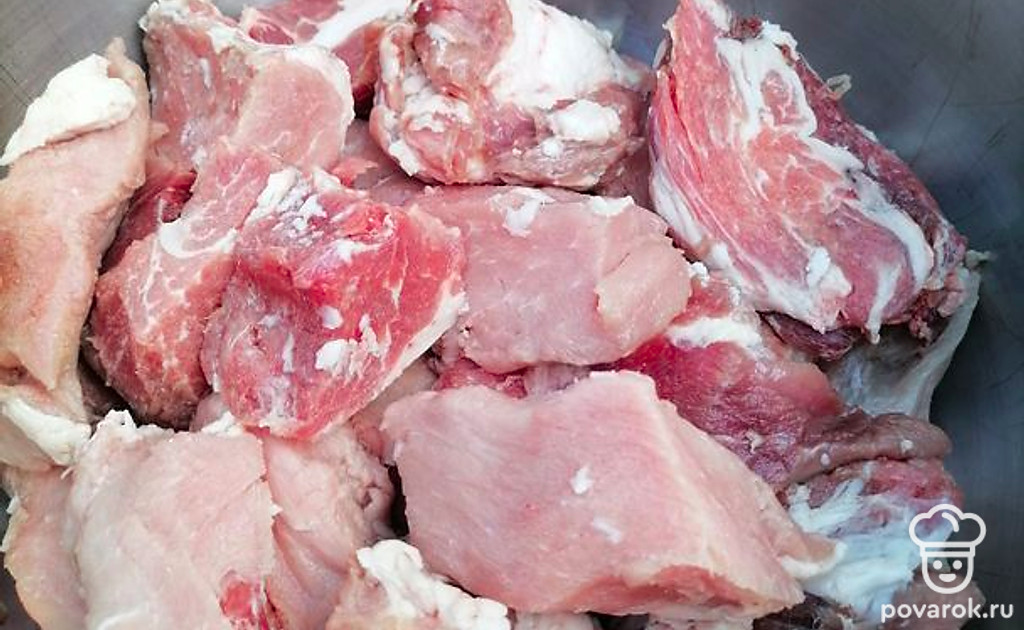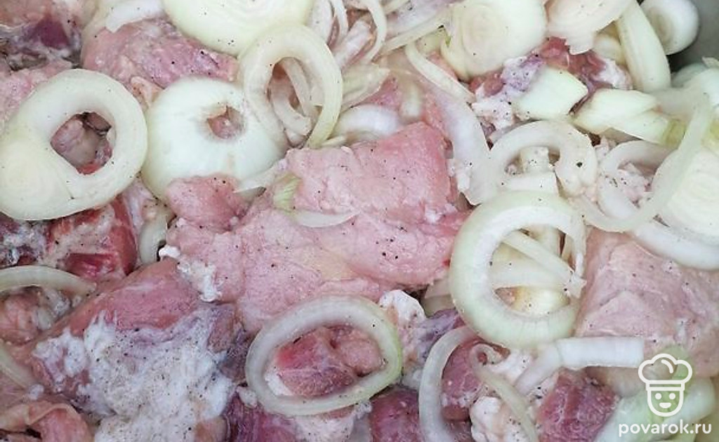 Промойте и нарежьте мясо. Лучше всего брать шейную часть. Шашлык из неёеполучается более мягким.