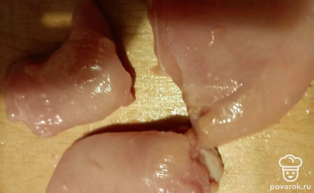 Грудку помыть, просушить. Чеснок почистить, нарезать мелко.