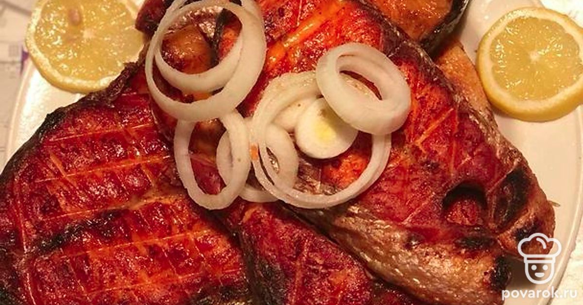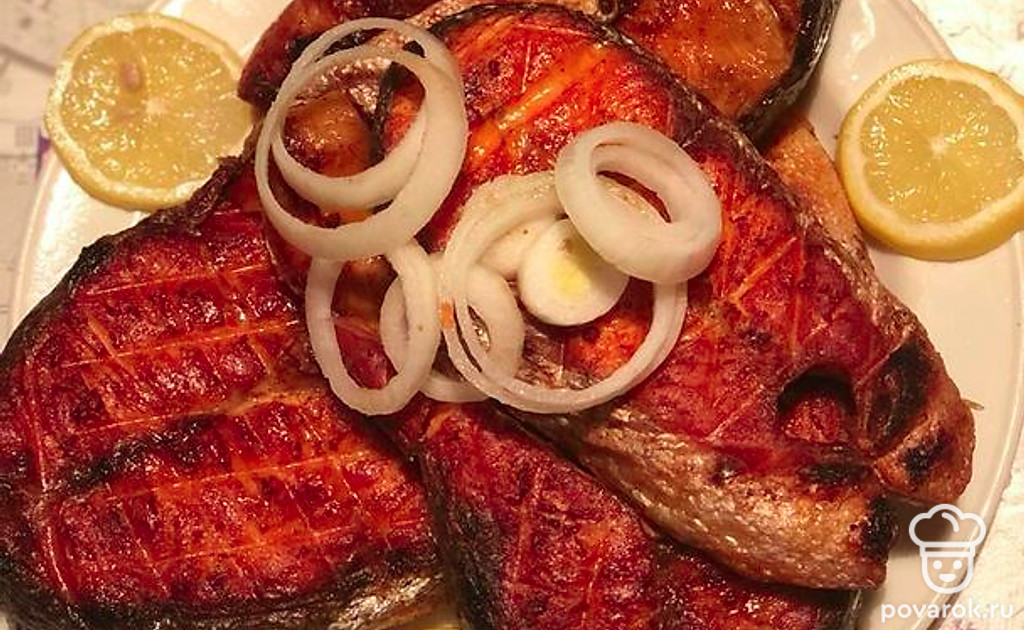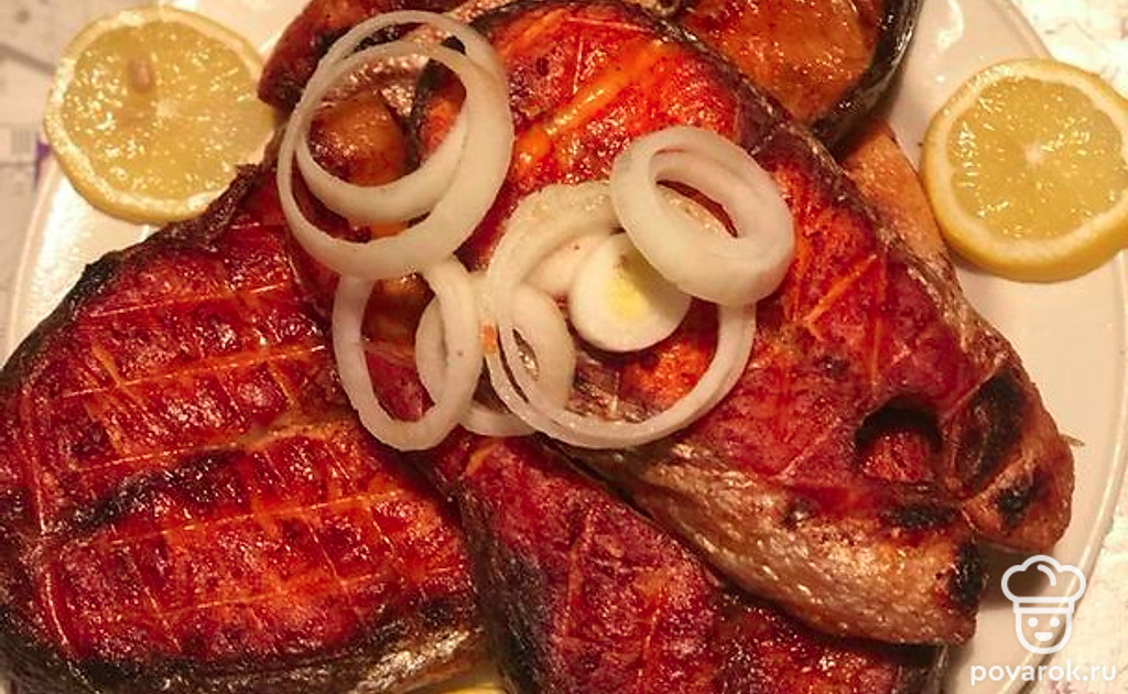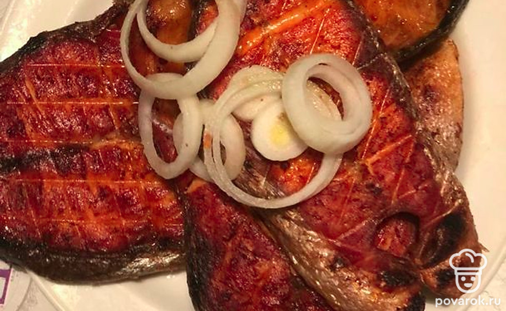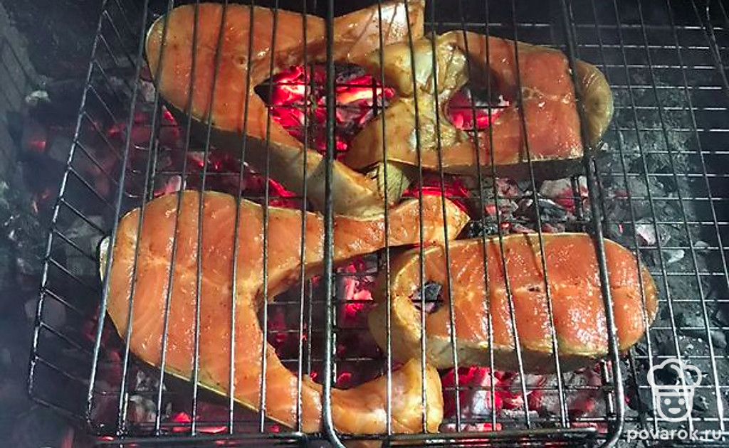 Достаём из холодильника и раскладываем на сетку, относим на мангал и жарим до готовности.