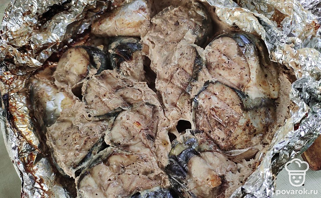 Рыбу закрываем фольгой. Отправляем на мангал.