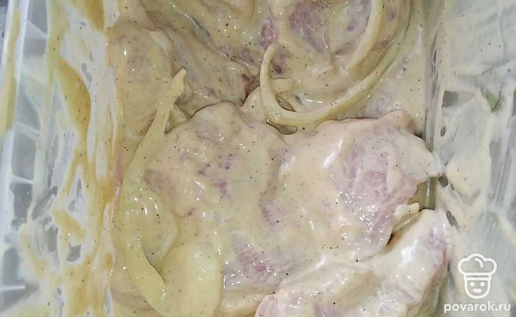 К мясу добавить майонез.