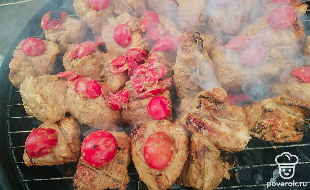 Помидоры размягчают мясо, что делает шашлык сочным и вкусным.