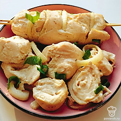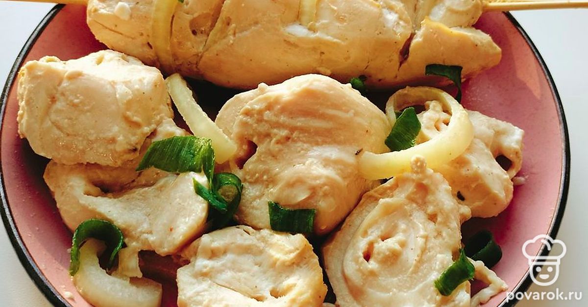 Куриный шашлык в духовке получается нежным и вкусным. Отлично подойдет тем, кто следит за фигурой.