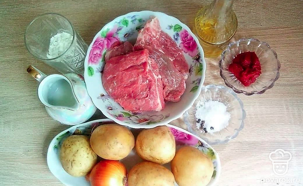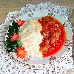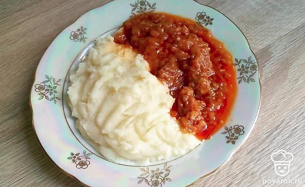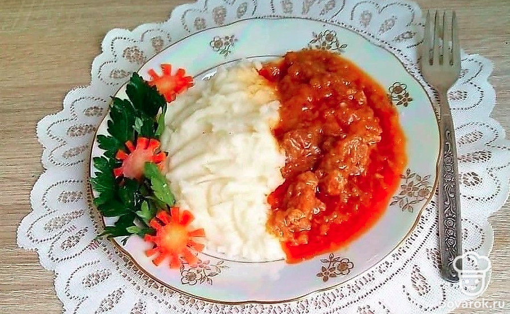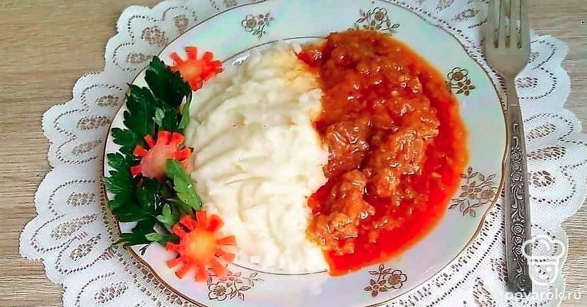 Вкусный гуляш из телятины с картофельным пюре