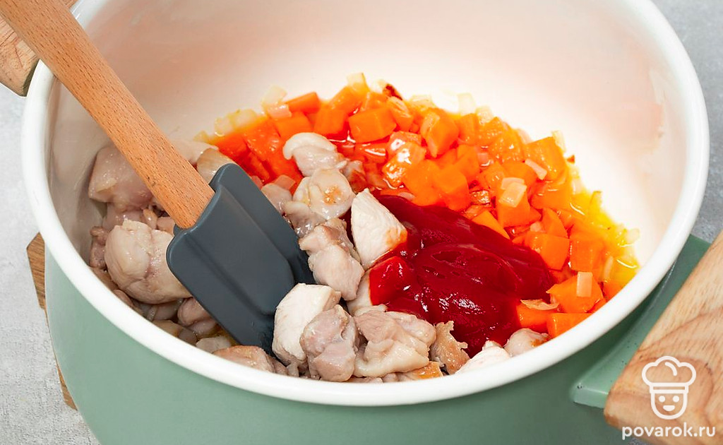 Гуляш из филе индейки с куриной голенью