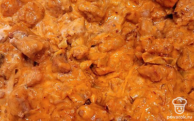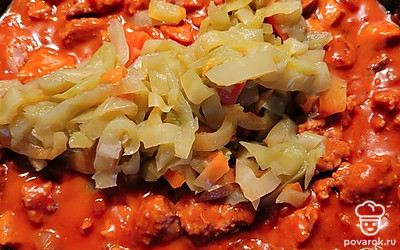 По истечении полутора часов, добавьте нарезанный перец (у меня замороженный). Готовьте ещё 30 минут и снимите с огня.