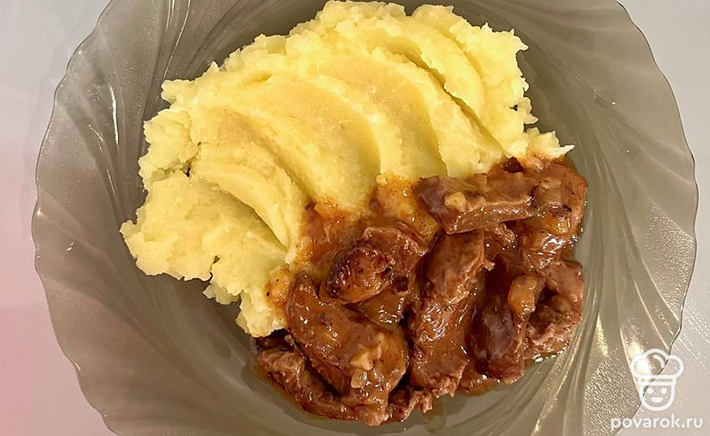 Подавать гуляш рекомендую с картофельным пюре: так же, как нам давали в детстве.