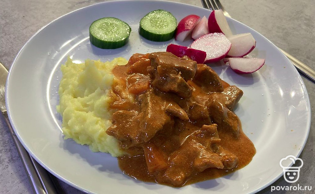 Перемешайте гуляш до однородности.