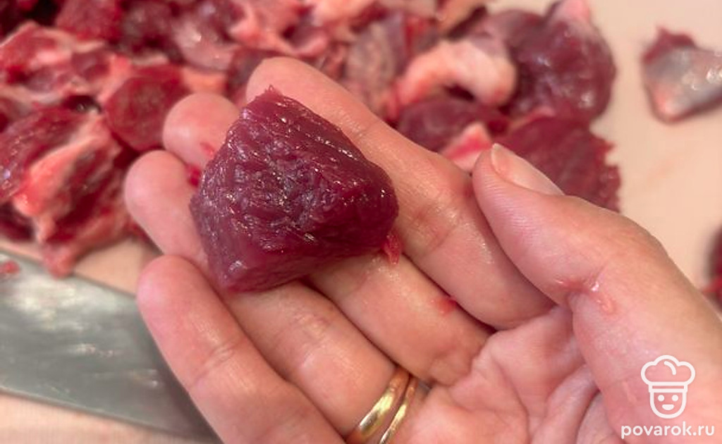 Нарежьте кубиком произвольного размера. У меня кубики примерно 2 на 2 сантиметра.