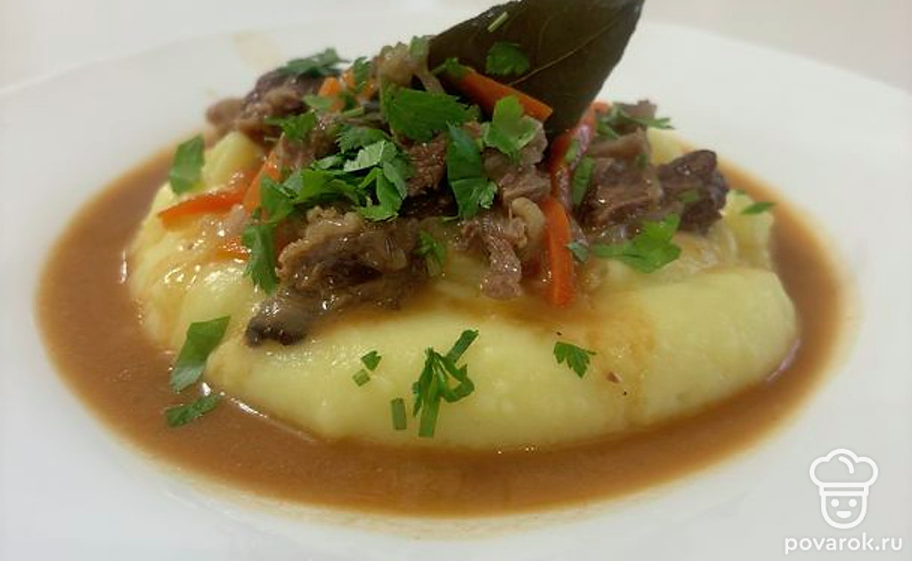 Наш гуляш готов. При подаче можно украсить свежей зеленью. Приятного аппетита!
