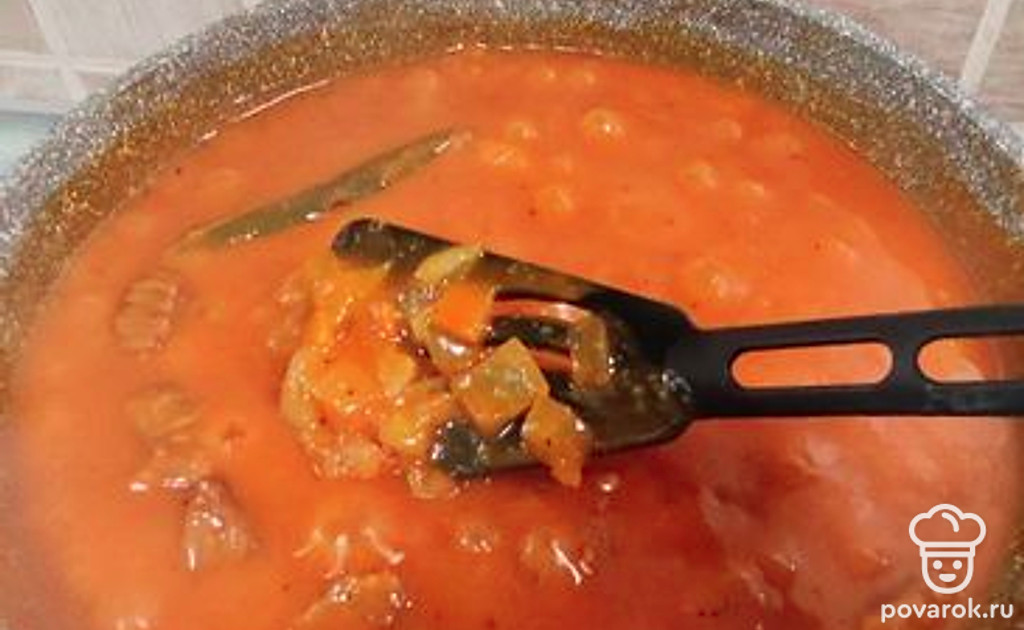 Добавьте приправы, соль, лавровый лист, острый кетчуп/соус по вкусу. Как ни как у нас кавказское блюдо!