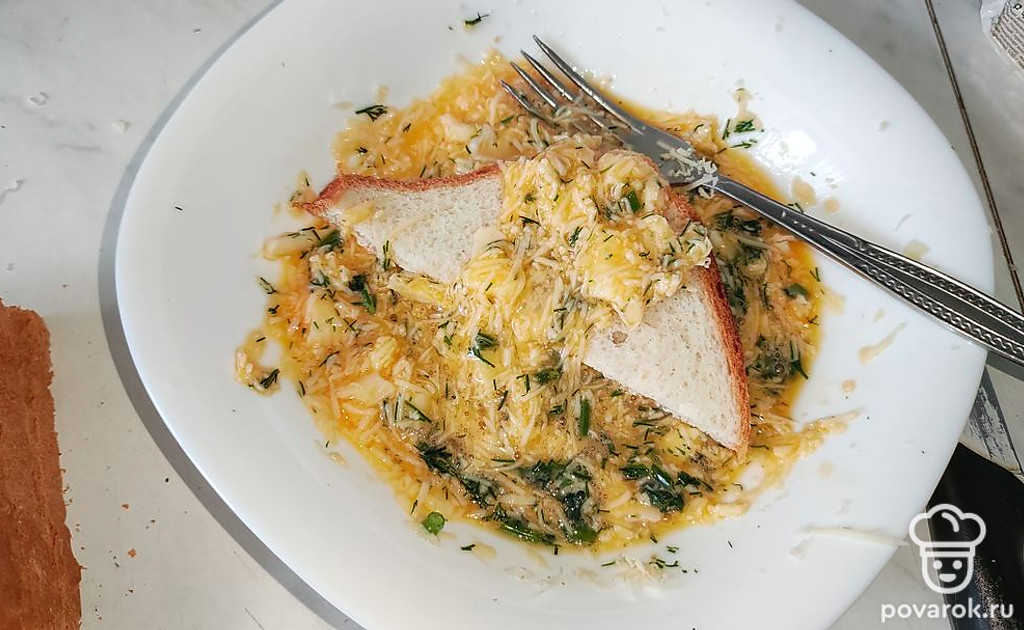 Приготовим вкусные гренки с сыром и укропом на завтрак.